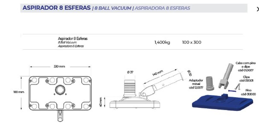 O Aspirador Brustec é conectado à mangueira da piscina e, com movimentos suaves, remove a sujeira do fundo da piscina. Seu peso e design permitem que ele “flutue” sobre a superfície da piscina, facilitando a limpeza.