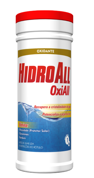 Oxiall é um oxidante que elimina a matéria orgânica as chamadas cloraminas (cloro combinado com matéria orgânica nitrogenada) liberando o chamado “cheiro de cloro” irritante aos banhistas, não forma tri-halometanos (resíduos potencialmente cancerígenos), libera e aumenta o poder de desinfecção do cloro, resultando em maior proteção aos banhistas e menos custo no final do tratamento.